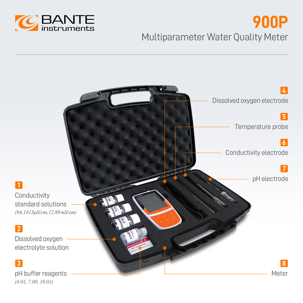 Multiparameter water quality meter, containing 8 measurement modes, stores up to 500 data.